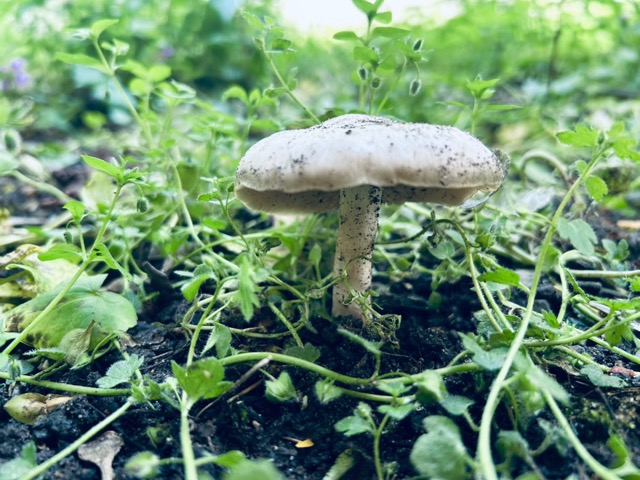 - Цвет шляпки: Шляпка серовато-коричневая, с темными включениями земли, что соответствует варьирующему цвету шляпки оленьего гриба (от серого до темно-коричневого).