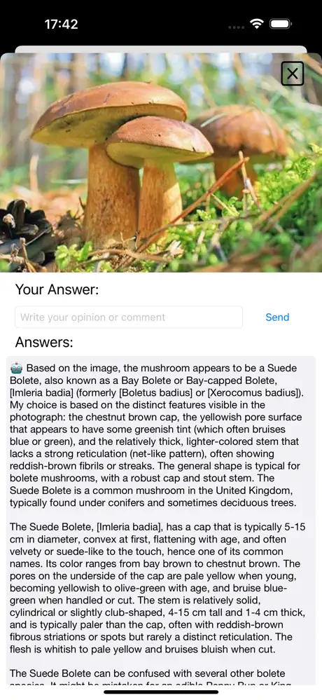 - Уверенность для каждого. Даже опытные грибники иногда сомневаются. Приложение служит отличным вторым мнением, которое помогает подтвердить или опровергнуть догадку, придавая уверенности в своем выборе.